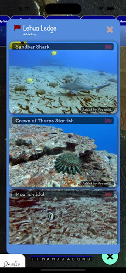 Dive site in the wrong spot or named incorrectly? Let us know but long pressing on the dive site flag to send us an email. Same goes for sea creatures, if we have misidentified any creature please let us know by long pressing on the sea creature photos flag icon to send us an email to make the corrections.