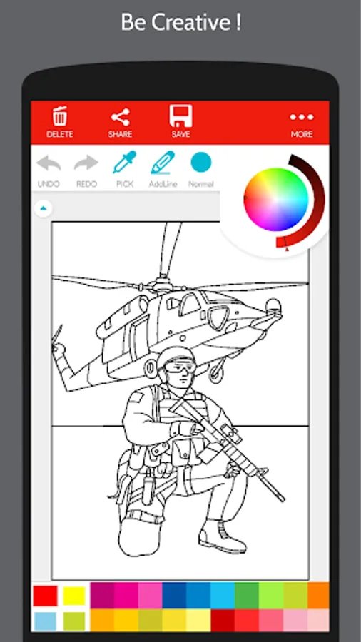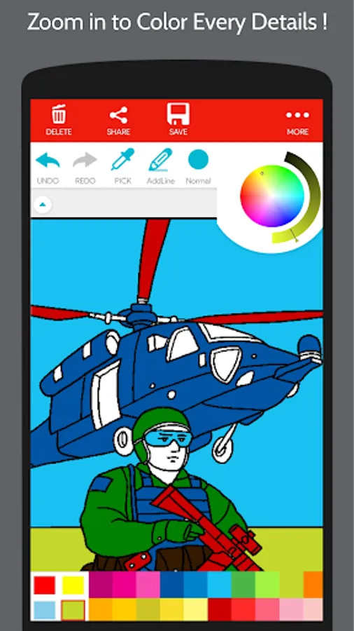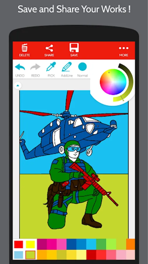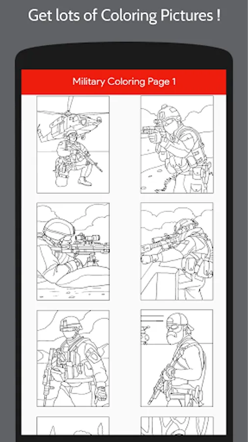 So, what are you waiting for? Download and install our military coloring book for boy and girl. Take a break and enjoy our amazing Coloring Book. Choose the best pictures you like the most and start coloring in one tap. You will be amazed on how something so simple can bring so much relief and fun!