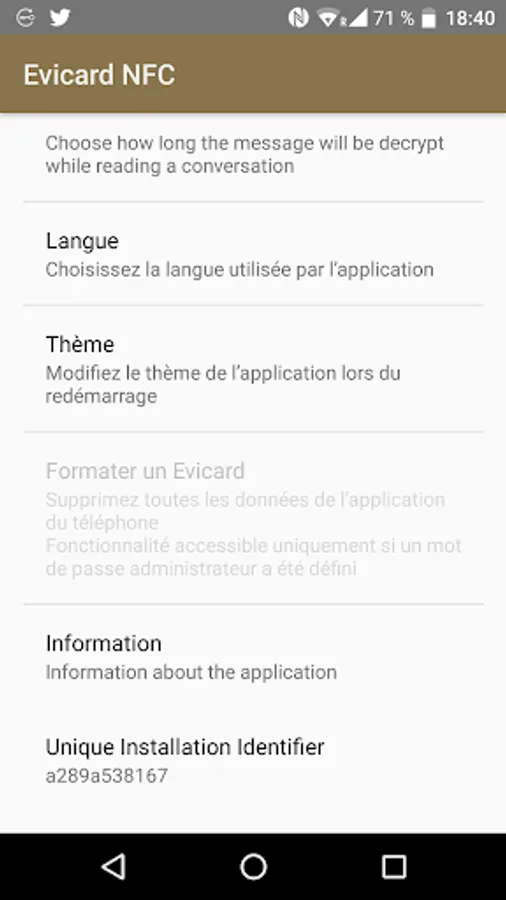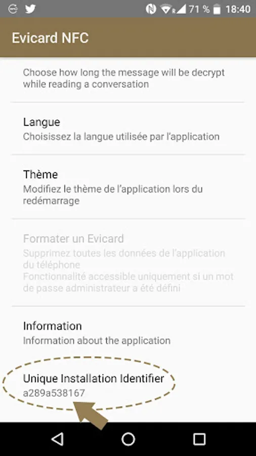 In addition, NFC EVICARD has a numerical innovative messaging Cybersécurisée through a remote system pairing between several NFC EVICARD. This enables the exchange of encrypted messages between NFC EVICARD exclusively paired. Very easy to use, no contact, you can create, delete, archive and backup your contacts and stamped messages or exchange messages in totally stealth mode, without leaving a digital trace. Works by a simple exchange of invitations between NFC EVICARD via any messaging present in your smartphone.