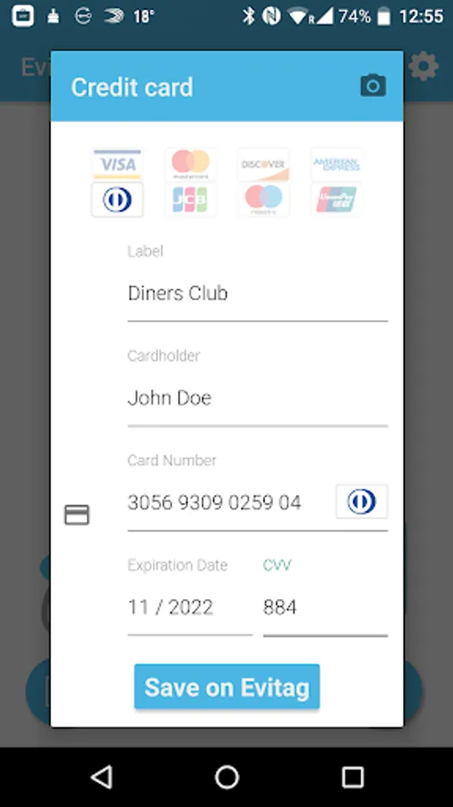 An electronic safe Cybersafe, NFC, multilingual, which works without contact. This is the application of the EviTag NFC module password manager, bank cards and loyalty cards *.