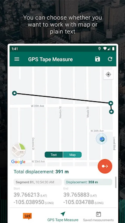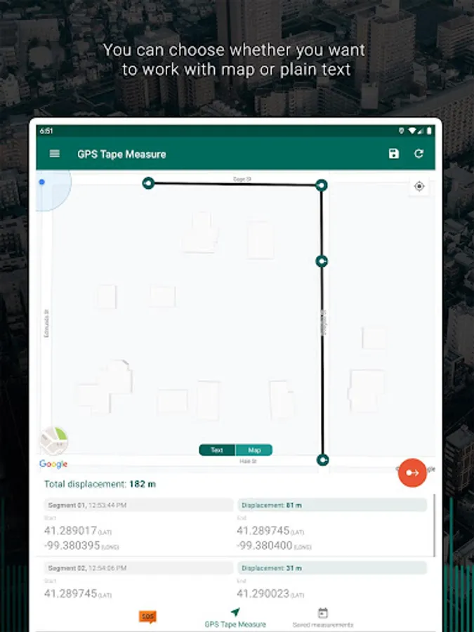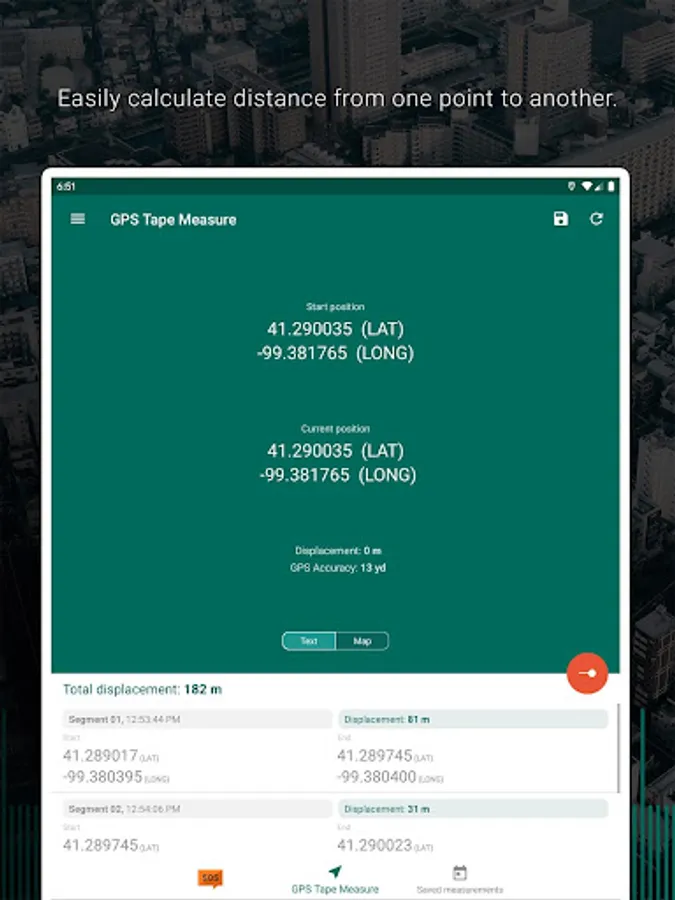 GPS Tape Measure is an app which calculates the distance from point A to point B.