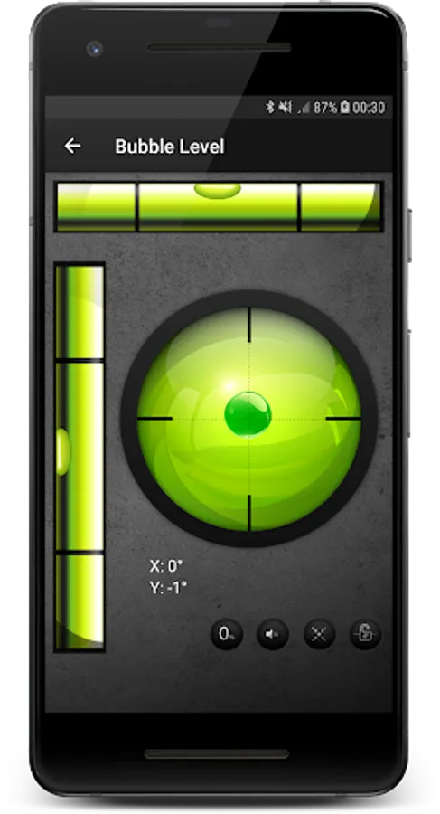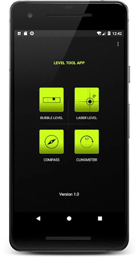 Choose from different leveling options, the 3 in 1 bubble level, the clinometer (Inclinometer) which allows you to measure the angles of sloped lines, or simply lay your phone on a surface or on its side like a traditional level. This app also has a compass with a bubble level inside which allows you to easily check your heading and level simultaneously.
