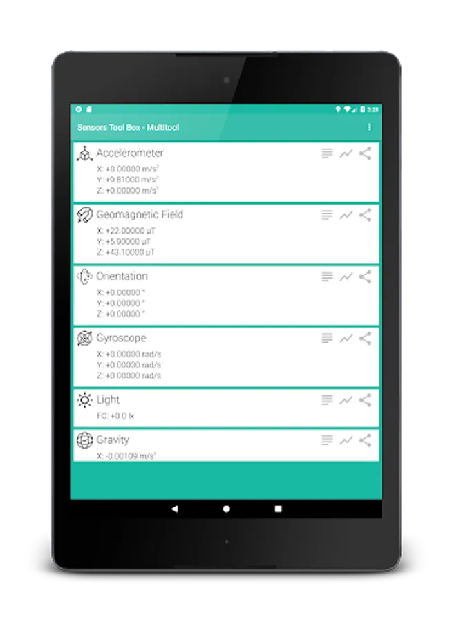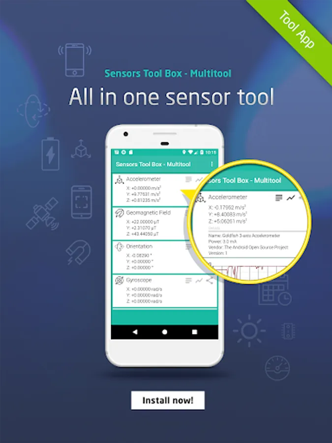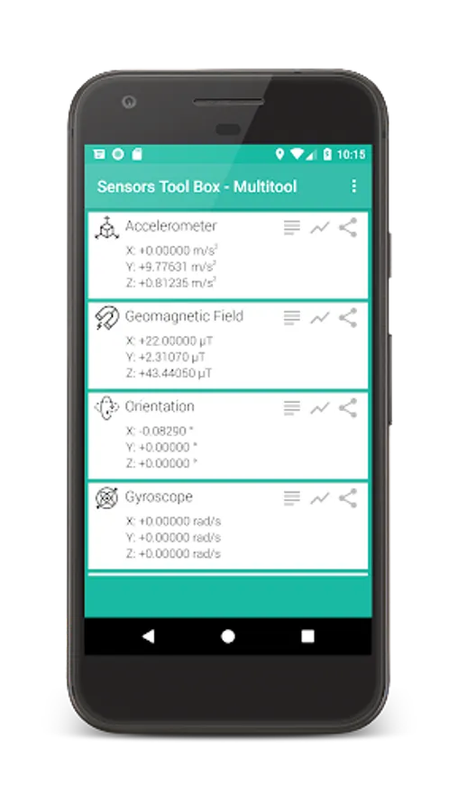 Sensors toolbox - multi tool makes the most of all the sensors in your smartphone. With a user friendly interface and easy to read layout, Sensor Toolbox allows you to collect data in real time for any and all sensors on your phone. Convert the data into easy to read graphs with a detailed readout from each sensor.