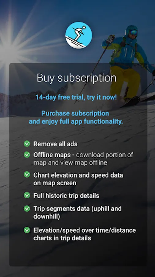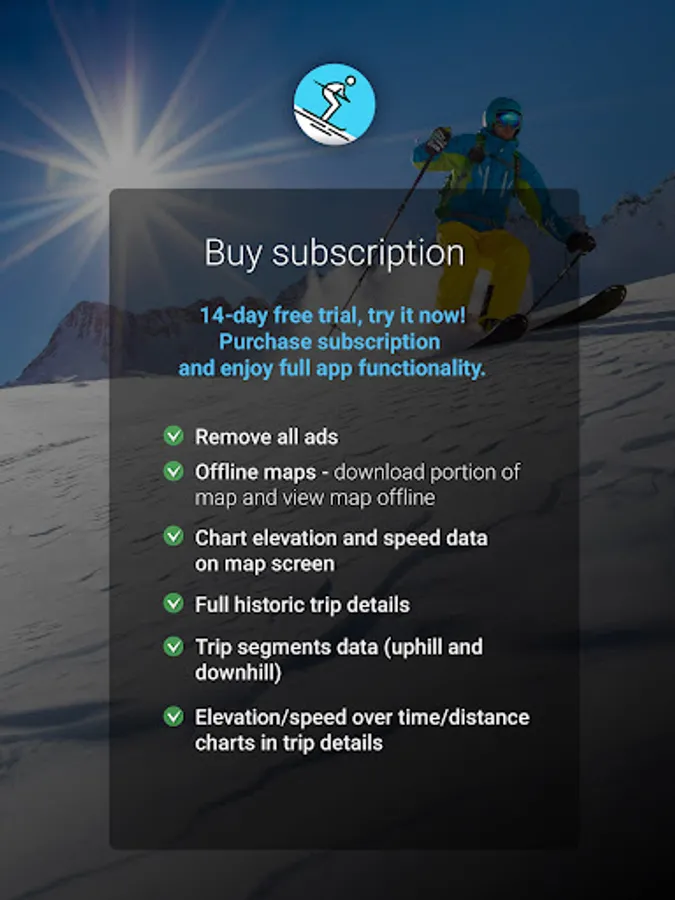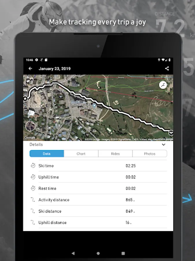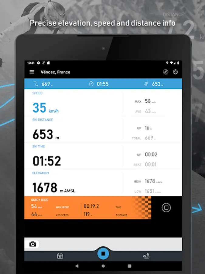 This app allows you to track every inch/centimeter of all your skiing adventures!