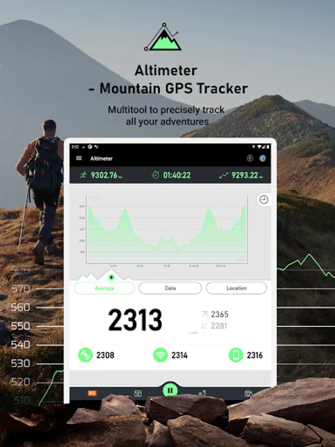 Turn your smartphone into a multi-functioned altimeter. Our unique algorithms determine your elevation using three sources - the GPS system in your phone, network services, and when available, your device’s barometer. Our algorithm combines data from all three sources to give you the most accurate reading possible.