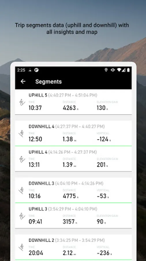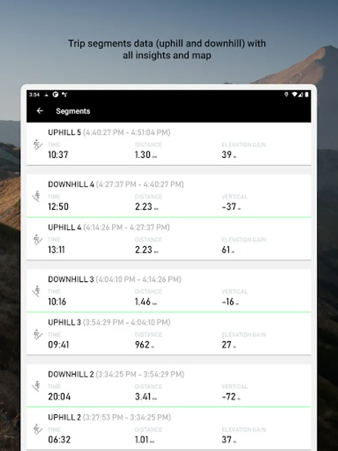 One of the coolest features of the app is that it divides your route into segments. In the segments screen you can see separate uphill/downhill data, you can easily check how long it took you to climb a mountain, your recent pace and elevation gain or how fast you went downhill later on. You can go into the details of the segment on the map, see a full chart and all data displayed on a list.