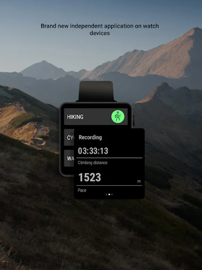 Our app comes with a brand new independent application for Wear OS watch devices. You can easily track your hiking without using your phone and synchronize data afterwards to enjoy viewing your routes on a bigger screen!
