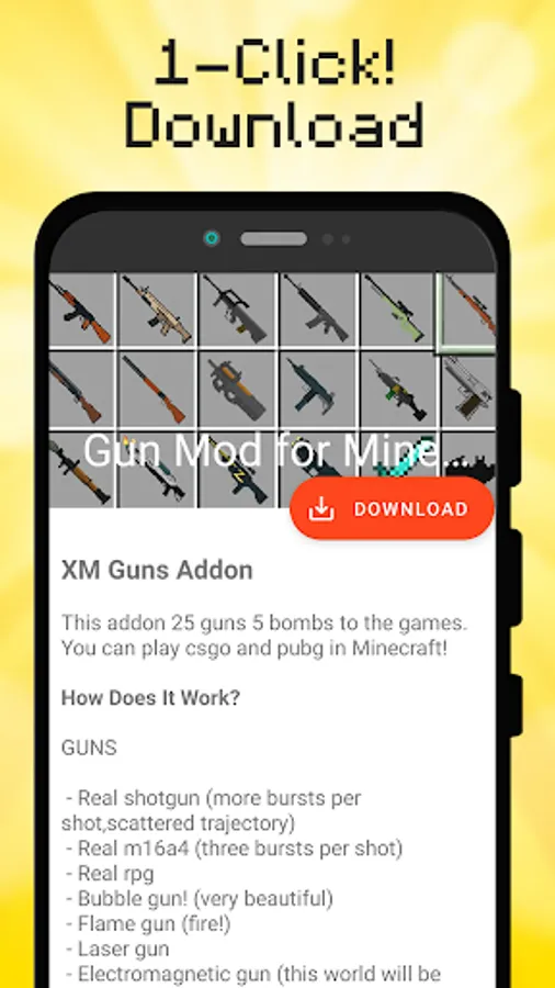 We design this app to make it easy to download & install Minecraft xm Gun Addons into your mobile device. With 1-Click installer, everything will be done in few seconds!