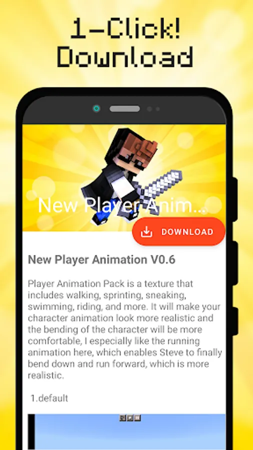 We design this app to make it easy to download & install Minecraft New Player Animation Addons into your mobile device. With 1-Click installer, everything will be done in few seconds!
