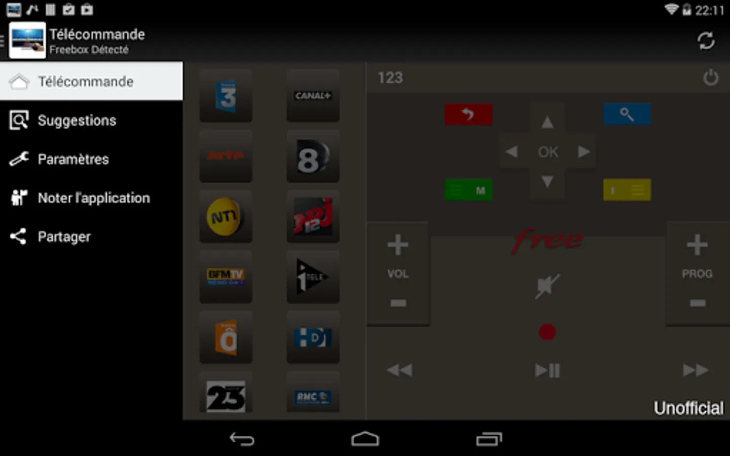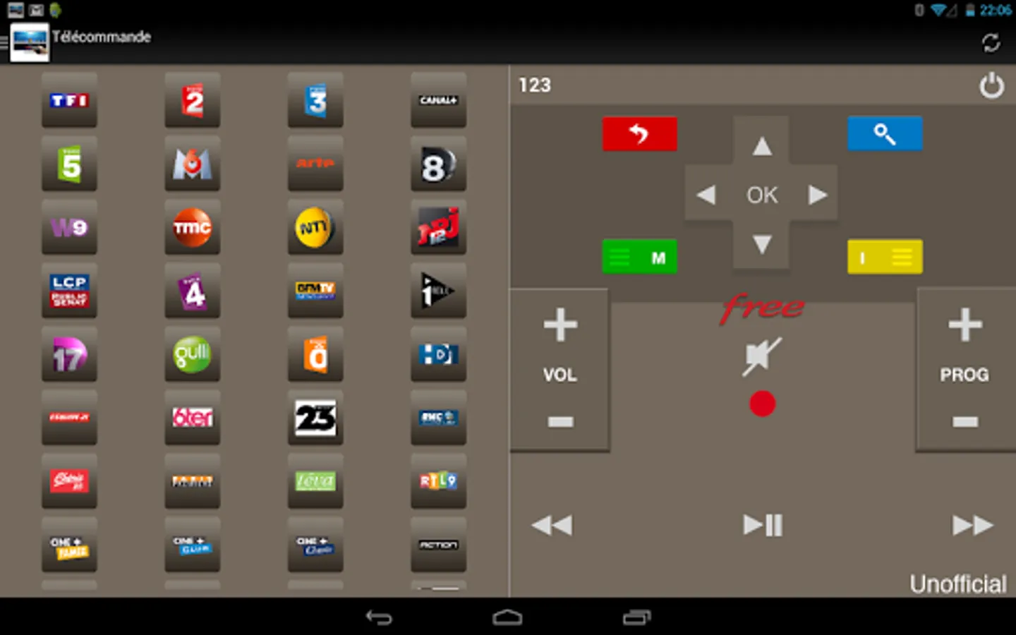 "Freebox Remote Control" is a virtual remote control that lets you control your Freebox HD or Revolution. In addition, the application is completely free.