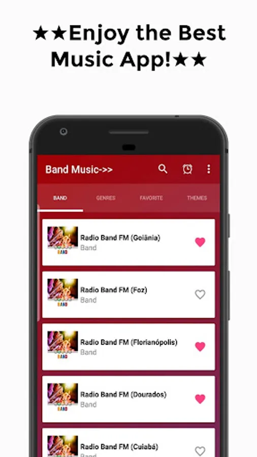 🎸🎼🎻🎧 Enjoy and listen to the best music Band. This App have a lot of music Band and the best Band Songs🎼 like radio band news fm, america band songs, live band songs, boy band songs, fun band songs, radio band news ao vivo, marching band music, big band songs, etc.
