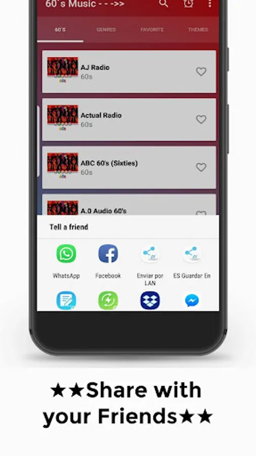 🎸🎼🎻🎧 You have found it! This is one of the Best Free Music Apps for your Smartphone or for your Android Tablet that collects Internet Radio 60s Music Stations from of many other categories. You will enjoy free 1950s Songs Online of different 60s singers.