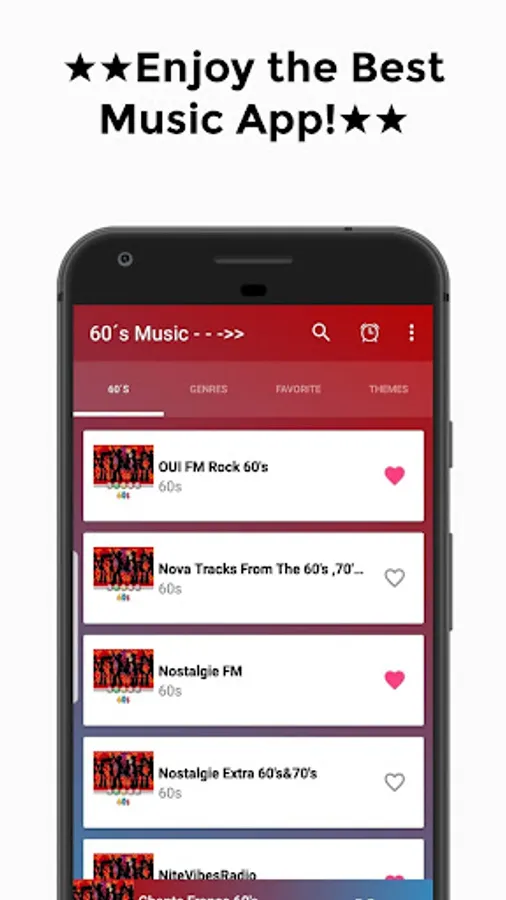 🎸🎼🎻🎧 Listen to 60s music. This App have a lot of 1960s Radios🎼, 60s music hits🎼, different 60s music artists 🎼 popular 60s music🎼, best 60s music list🎼, 60s music bands🎼, 60s soul music🎼, 60s Christmas music🎼, 60s dance music playlist🎼, music of the 60s 70s and 80s🎼, 60s music style🎼, 50s and 60s music list🎼, 60s and 70s music station, 50s and 60s music artists🎼, 60s rock and roll music🎼, 60s pop music 🎼, 60s rock music 🎼, 1960s country music 🎼, old music 60s 🎼, 60s 70s music 🎼, 50s 60s music 🎼, music groups of the 60s 🎼, late 60s music 🎼, etc.