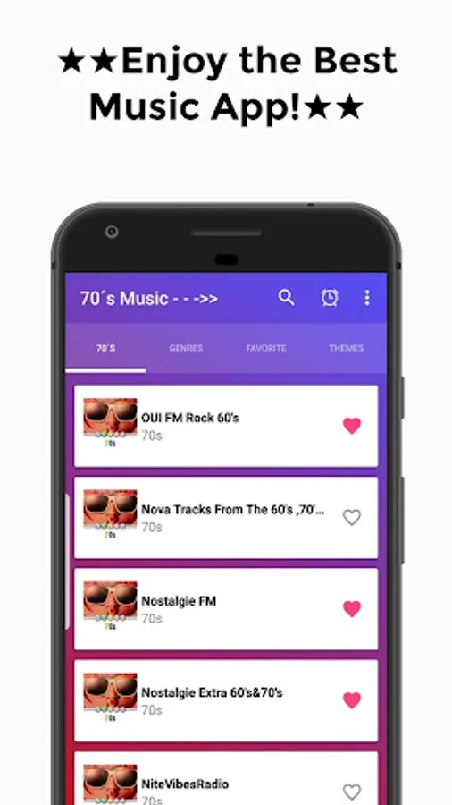 🎸🎼🎻🎧 Listen to 70s music. This App have a lot of 1970s Radios🎼, 70s music hits🎼, different 70s music artists 🎼 popular 70s music🎼, best 70s music list🎼, early 70s music bands🎼, 70s soul music🎼, 70s Christmas music🎼, 70s dance music playlist🎼, music of the 70s 80s and 90s🎼, late 70s music style🎼, 60s and 70s music list🎼, 70s and 80s music station, 60s and 70s music artists🎼, 70s rock and roll music🎼, 70s pop music 🎼, 70s rock music 🎼, 1970s country music 🎼, old music 70s 🎼, 70s 80s music 🎼, 70s 80s music 🎼, music groups of the 70s 🎼, late 70s music 🎼, best 70s songs 🎼, top songs of the 70s 🎼, 70s love songs 🎼, 70s popular songs 🎼, 70s hits songs 🎼, 70s rock songs 🎼, 70s songs list 🎼, etc.