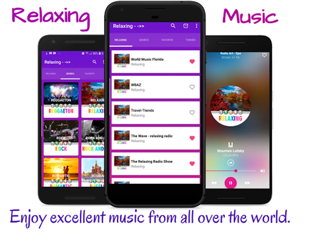 You have found it! This is one of the Best Free Music Apps for your Smartphone or for your Android Tablet that collects Relaxing Music from Relaxing Radio of many other categories. In addition you will enjoy meditation music🎼, sleep music🎼, smooth radio🎼, instrumental music🎼, sleep sounds🎼, sleep meditation🎼, calming music🎼, yoga music🎼, relax fm radio🎼, soothing music🎼 and many more. You can enjoy hours and hours of the Best Free Music from around the World.