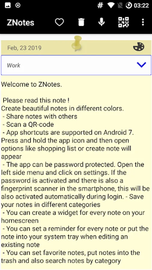 - You can set favorite notes, put notes into the trash and also search notes by category