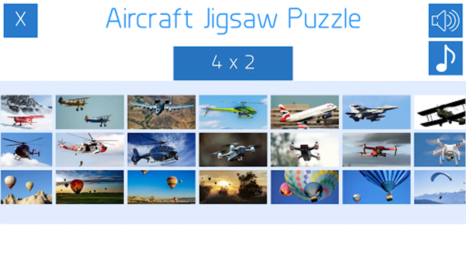Men, boys and seniors alike, are mesmerized with flight and all kinds of aircraft. The 56 pictures in the game give a glimpse of human ingenuity in constructing means of air transport: planes (from military jets, fighters and bombers to civilian passenger carriers), choppers and police copters, hot air balloons, motor-less gliders, fission-powered space crafts, surveilance drones (quadrocopters). What boy hasn't at least once dreamt of becoming an airplane or a helicopter pilot? Even a guy who isn't an engineer, technician or programmer secretly wants to own a small remote-controlled quadro-copter or a toy plane when he is 45 :)
