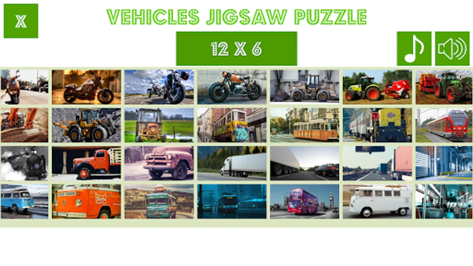 74 vehicle pictures to choose from in the game: car, bus, truck, tractor, motor bike, train, tram, bulldozer and other photos. Men, boys, teens and seniors are fond of transport and machinery, so it's a great way to boost the interest while solving difficult geometry tasks and improve one's IQ.