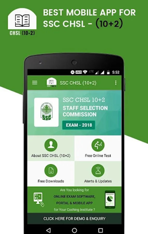 SSC CHSL (10+2) Exam- Free Mobile Application for SSC CHSL (Combined Higher Secondary Level) Exam preparation (pre, mains & interview) With All Exam Information in Hindi & English, Free Online Mock tests & Subject wise test, Online Test Series for English, Math’s & Reasoning, GK & GS, Current Affairs and other subjects. This app also has all the important exam alerts & Updates with Free PDF Download of Study Material.