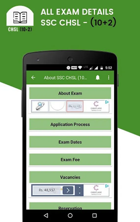 Our App provides complete details about SSC CHSL exam (pre, mains & interview), including latest updated exams details like Exam pattern, Eligibility criteria, Total Vacancies, Notification dates, Pay Scale, Selection Process, Subject wise detailed syllabus, cut off, Paper Analysis etc.