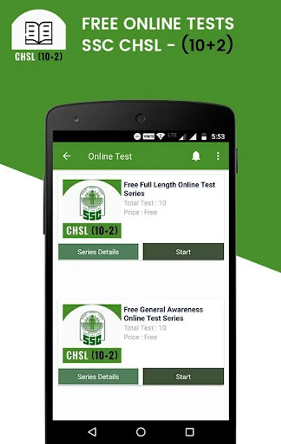 एसएससी सीएचएसएल (10+2) की तैयारी के लिए यह फ्री मोबाइल एप्लीकेशन बनाया गया है। इसमें सभी विषय सम्मिलित किये गए है और बहुत सारे फ्री टेस्ट आपकी तैयारी के लिए दिए हुए है।