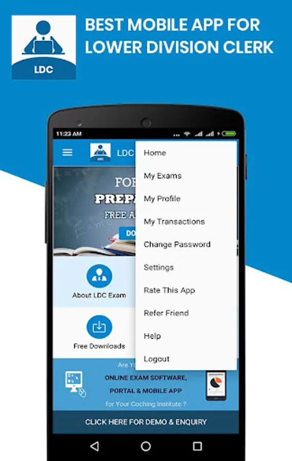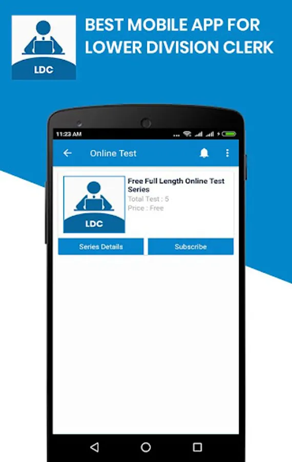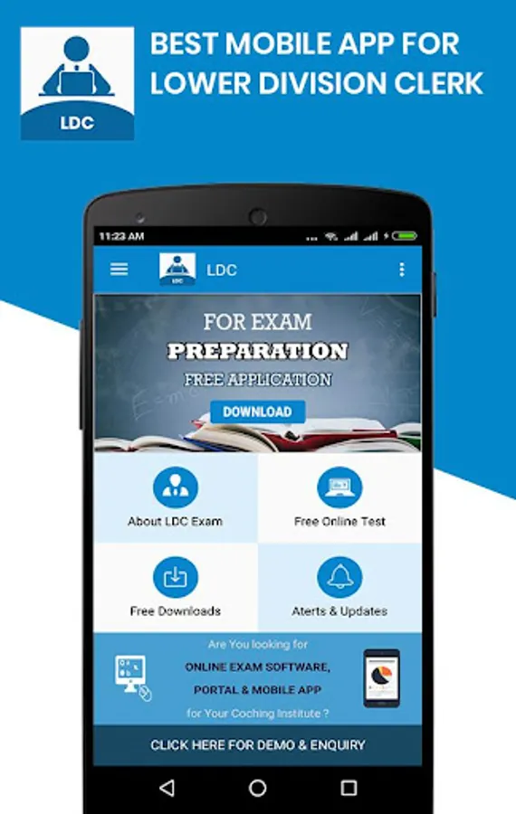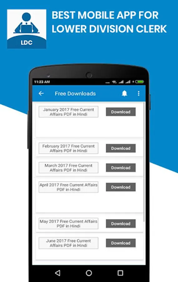 - Free Mobile Application for LDC (Lower Division Clerk) Exam preparation (paper I, paper II) With All Exam Information in Hindi & English, Free Online Mock tests & Subject wise test, Online Test Series for English, Math’s & Reasoning, GK & GS, Current Affairs and other subjects. This app also has all the important exam alerts & Updates with Free PDF Download of Study Material.
