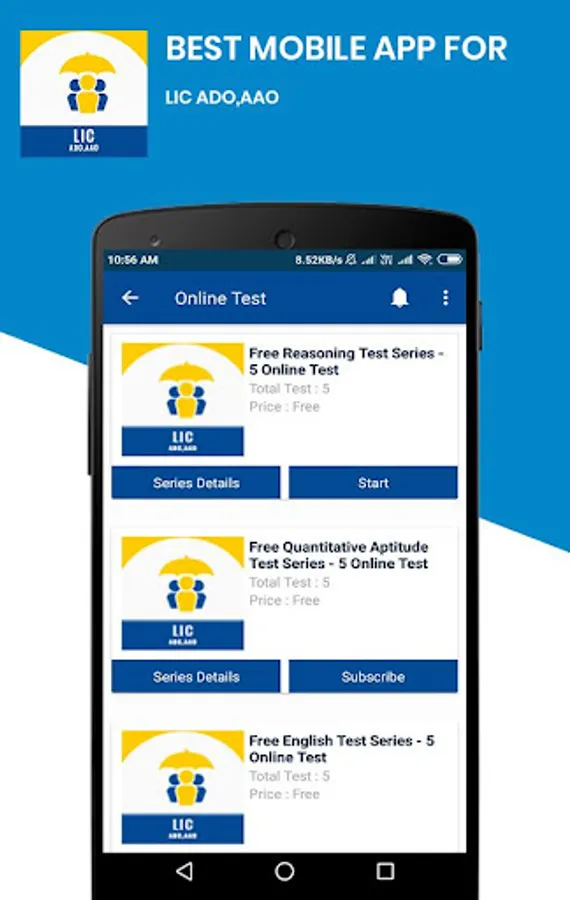In our LIC ADO,AAO Exam - Free Online Tests & Study Material App we have covered all the subjects like Logical reasoning, General knowledge, Quantitative aptitude, English language, Computer knowledge etc for all exams like LIC ADO,AAO.