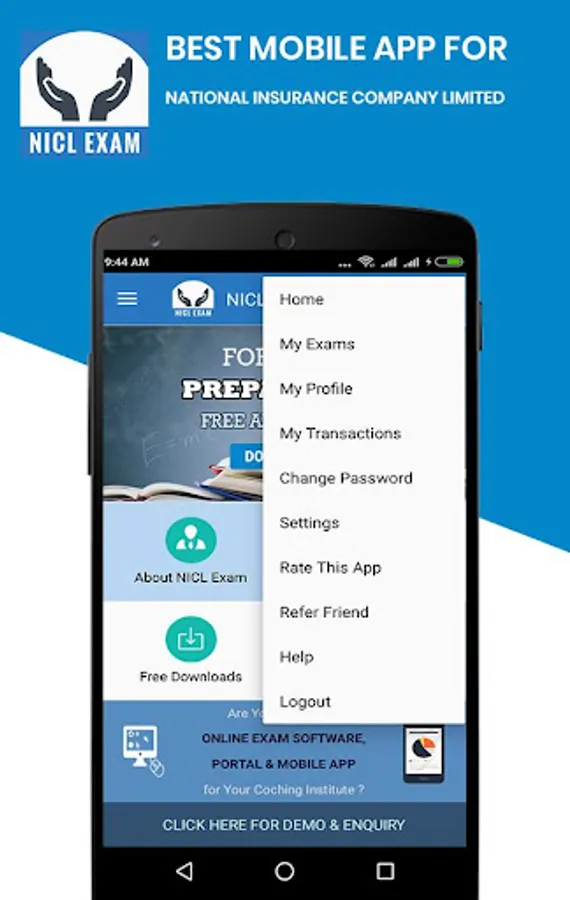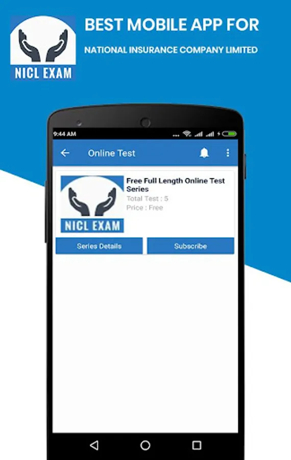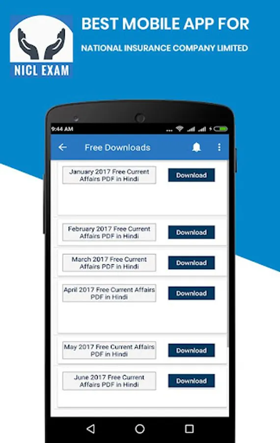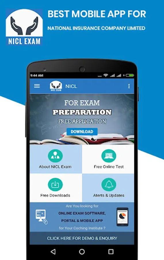 - Free Mobile Application for NICL (National Insurance Corporation Ltd) Exam preparation (prelims, mains) With All Exam Information in Hindi & English, Free Online Mock tests & Subject wise test, Online Test Series for English, Math’s & Reasoning, GK & GS, Current Affairs and other subjects. This app also has all the important exam alerts & Updates with Free PDF Download of Study Material.