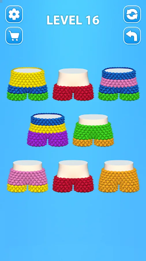 Personalize your sorting experience with our fun puzzle game! Earn rewards by completing color games and use them to pick the yarn type. A wide choice of yarn—from puffy to beaded—will help you color match every puzzle. You can also switch the items and try to color sort shorts instead of mittens. Explore endless options in our sorting game!