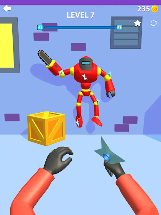 There are many in-game items to attack the robots. Choose the weapon you like most and kick the bad guys with one shot. Look for exploding barrels and boxes scattered on the arena, shoot into them and defeat the crowds of enemies within a blow! Be attentive and look sharp 'cause the assassins can appear out of nowhere!
