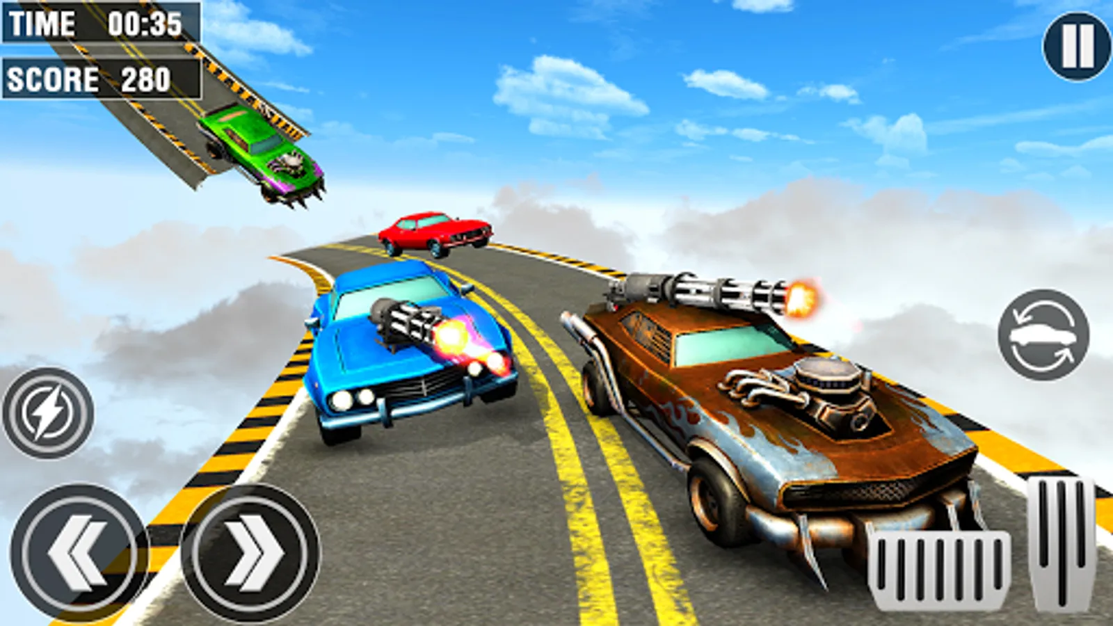 Challenge yourself while car racing, driving through sky tracks, crazy car stunt on mega ramps, hill climb and shooting the rival top speed racing cars, smash hit the hot wheels of enemies racing cars in this cool racing games. This brand new furious and fast racing game is about mountain climb 4x4. Where Hill climb and performing car stunt between the hill climb will be your missions. But, car driving through the top speed tricky tracks will need best car driver in this driving simulator game. Use machine gun and other guns upgrade top car smash the racing cars of rivals on the crazy car stunt tracks. Different furious racing missions and car drive modes are available for enjoying the mad car stunt & shooting games.