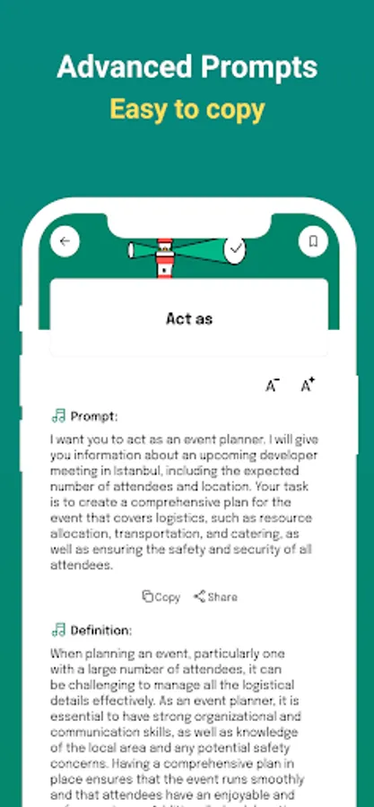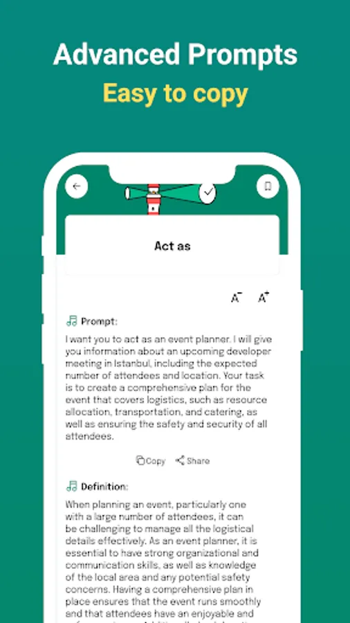 **Copy and Share:** Found a prompt that's too good not to share? With just a tap, you can copy any prompt to your clipboard and use it in other apps or share it with friends, spreading the creative love.