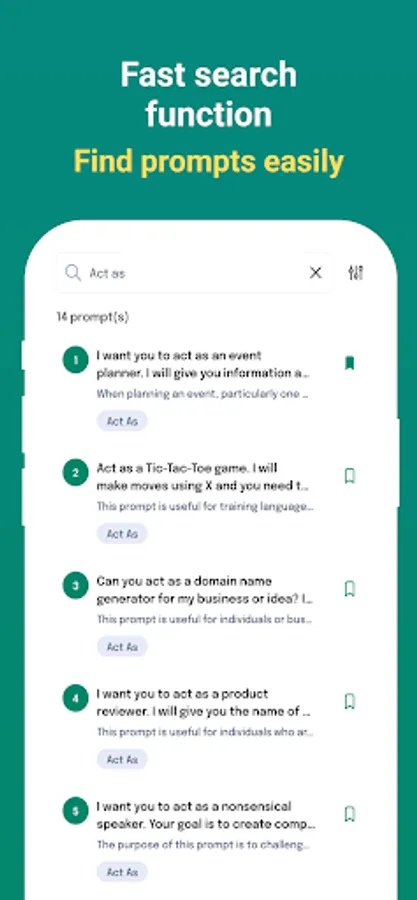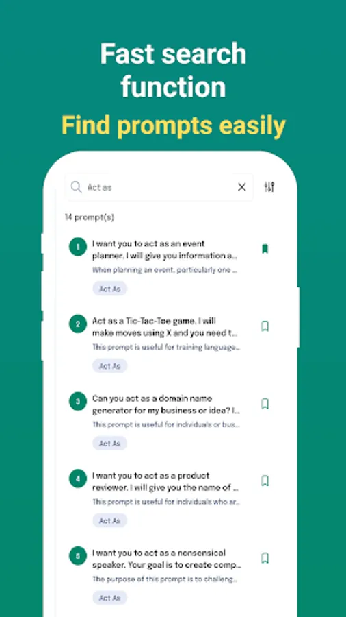 **Smart Search:** Need something specific? Our advanced search tool has your back. Easily find the perfect prompt using keywords or specific categories to match your mood and needs.