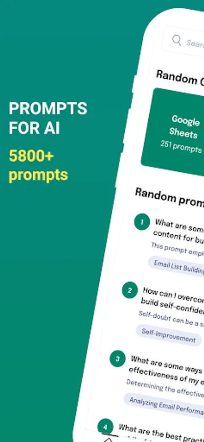 Welcome to Prompts for AI – the ultimate app that's designed to ignite your imagination and supercharge your creative juices! This app is all about giving you the tools to unlock your creativity in the most exciting ways. We've got a whopping 5800+ mind-bending prompts spread across a whopping 100 diverse categories, ensuring that you've got a bottomless well of inspiration and self-expression right at your fingertips.