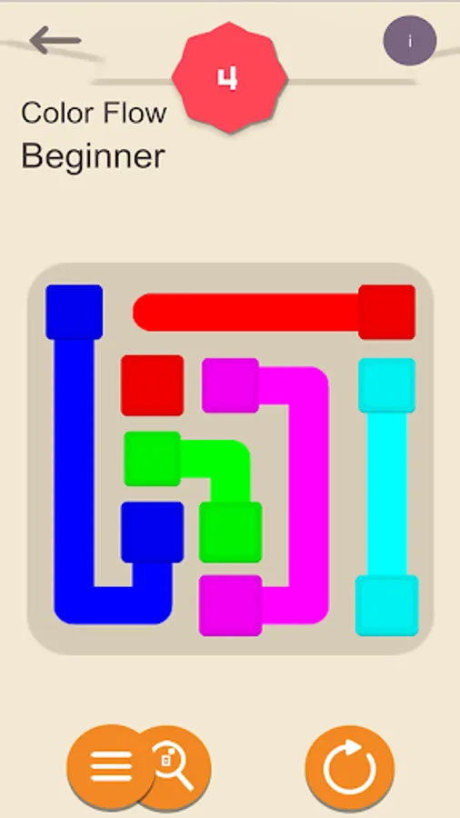 fill the puzzle with colors chose one block withx color anf try to take tothe other block with the same color.