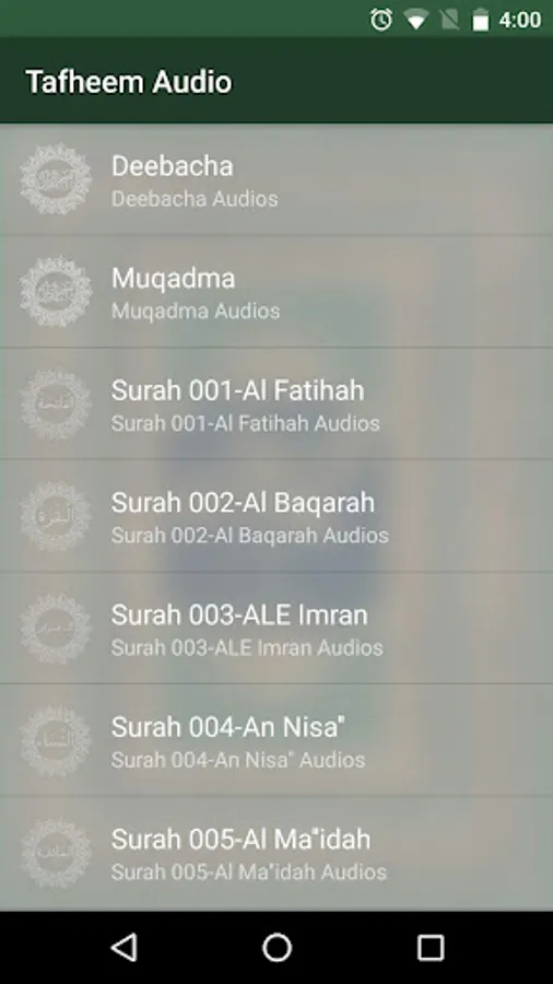 Tafheem ul Quran by Syed Maududi. This app is the audio of the tafheem ul quran detailed version, also includes tafseer (commentary).