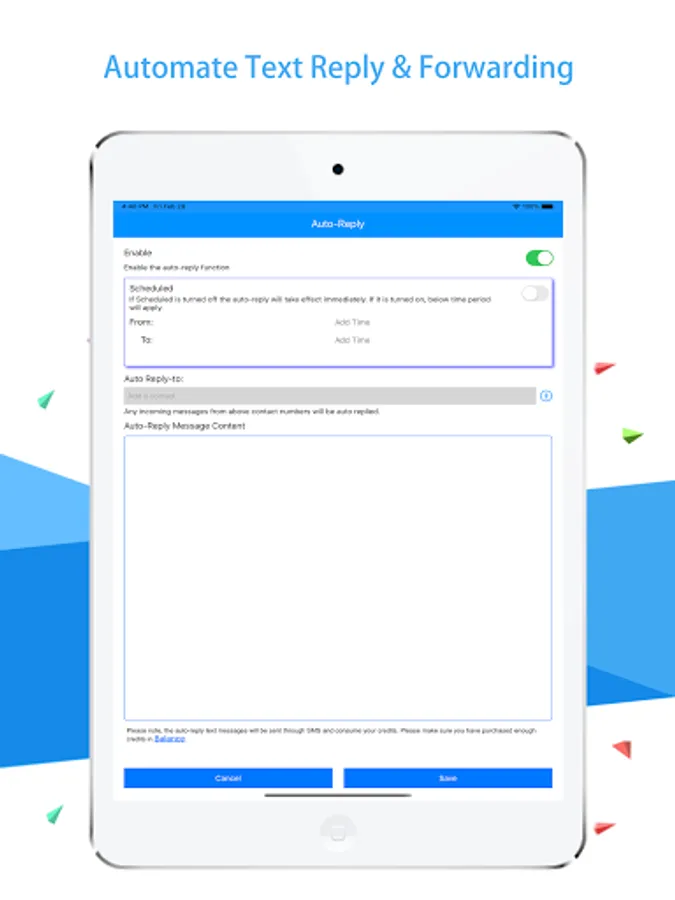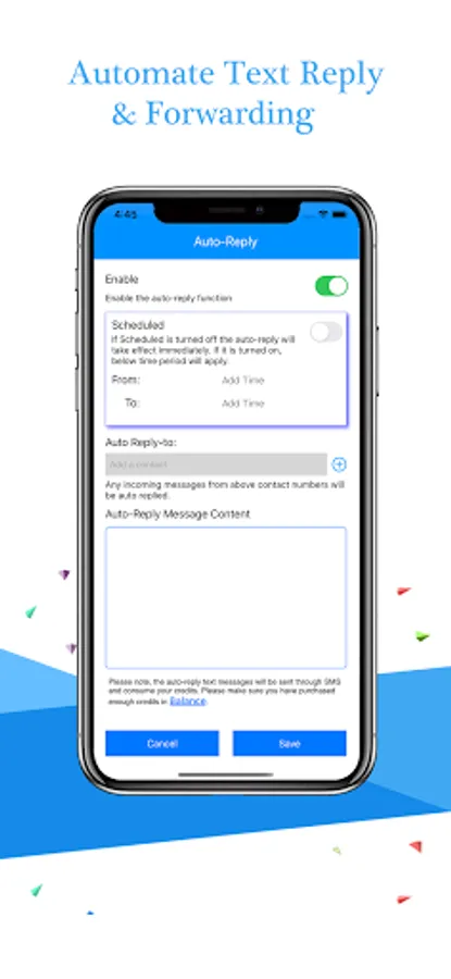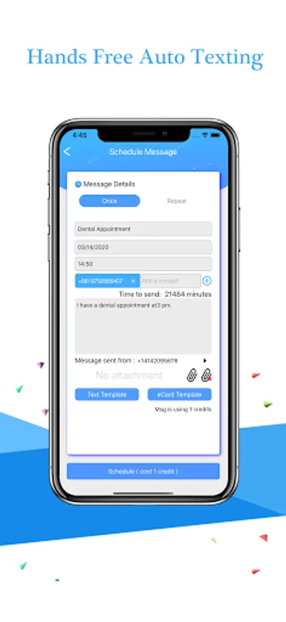 - Obtain an US and Canadian in-app phone number for automatic or manual text message sending at the scheduled date and time. Each US or Canadian number can receive unlimited number of text messages for free;