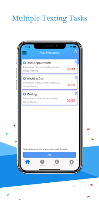 - Automate the sending of texts for recurring tasks, such as paying rental fee, pray reminding, submitting weekly/monthly reports, or handing in assignments;
