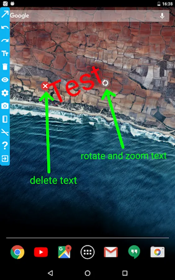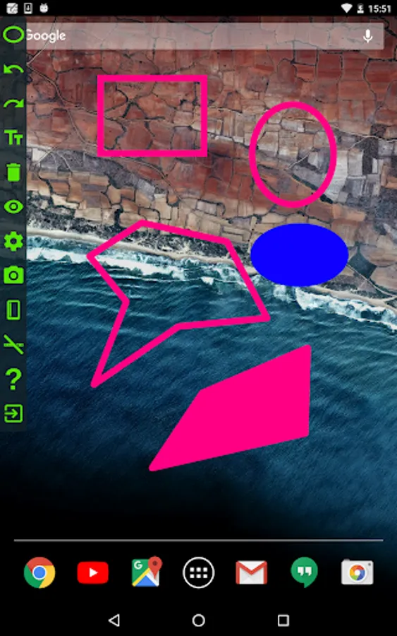 With Draw On Screen, you can draw anywhere or make text notes on anywhere of the screen(even over other apps), take screenshots(Android 5.0+ required for take screenshots).