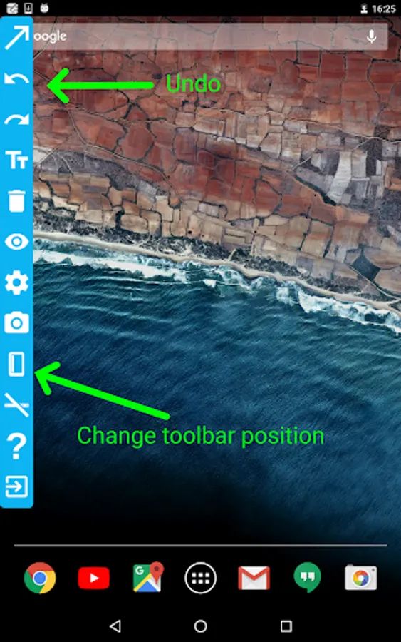 The app is useful for presentations, making tutorials for any other apps. The floating toolbar let you use the tools without leave the current running app.