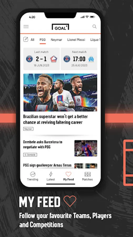 Personalise your passion with the ‘My Feed’ feature and curate an experience tailored to your football fandom. Simply choose your favourite teams and the competitions that matter most to you, and GOAL will ensure that those headlines are the ones you’ll hear first.