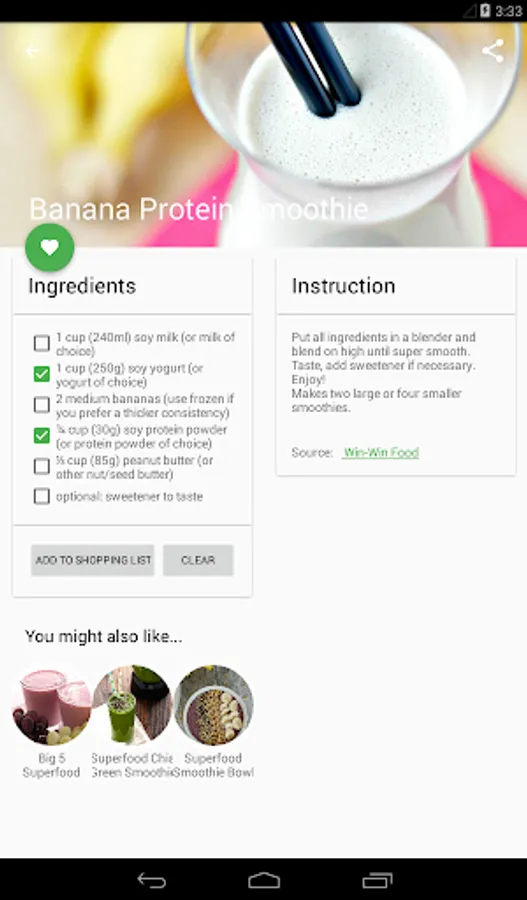 ✔ Add ingredients from recipe to the shopping list