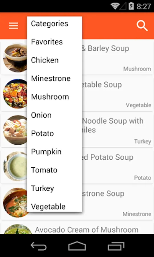 ✔ On the fly search recipes by ingredients or dish name (results change as you type)