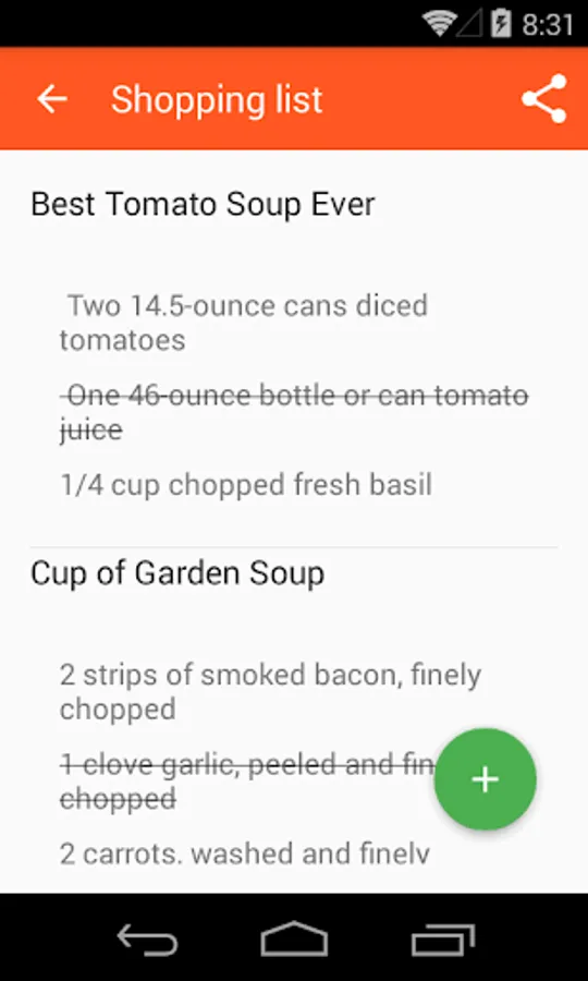 ✔ Add your own entries in the shopping list (one tap mark as purchased, long tap delete entry)