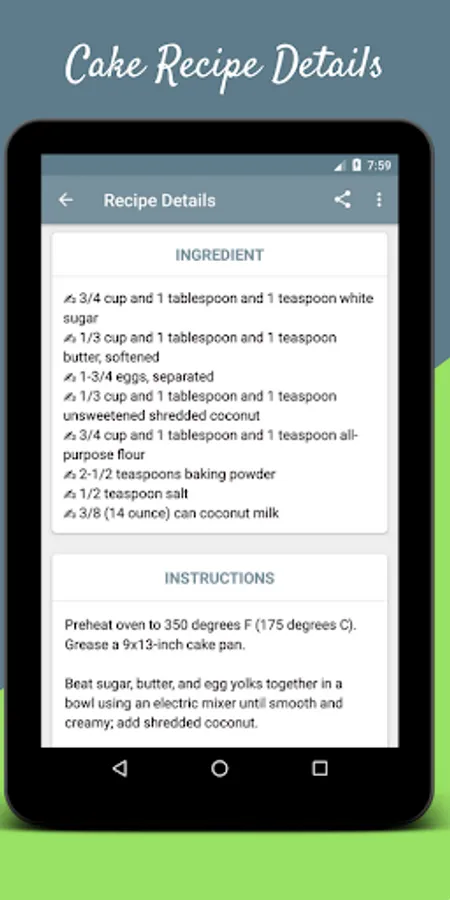 Try this Coconut Cake Recipe without oven with awesome cake flavour. cake recipe veg is also included in this app. Easy cooking cake real recipe with step by step making cake recipe. This Coconut Cake Recipe is the best cake recipe app in english and it's also delicious cake recipe offline app.