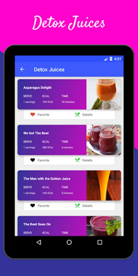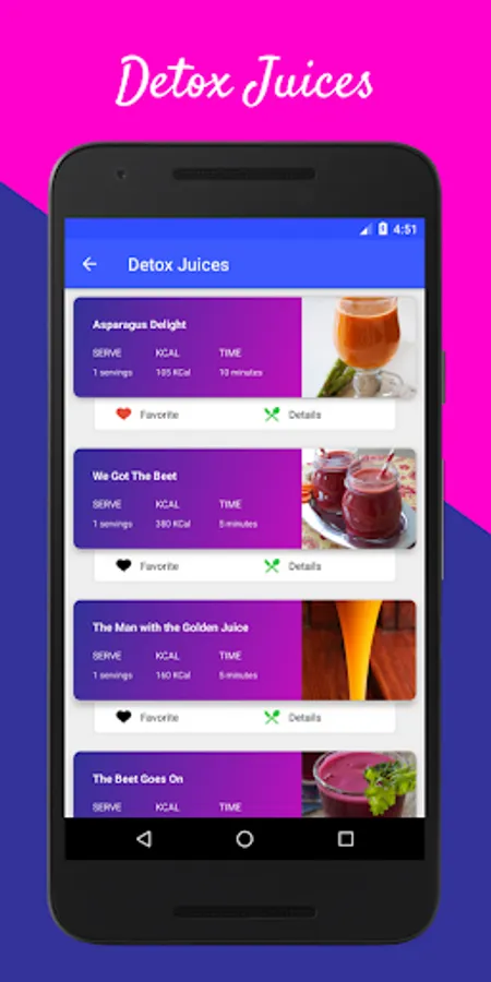 You will find awesome detox juicing recipes in this amazing juicing app. Detox juice recipes are with easy step by step recipe making instructions. So get these different types of juices recipe app.