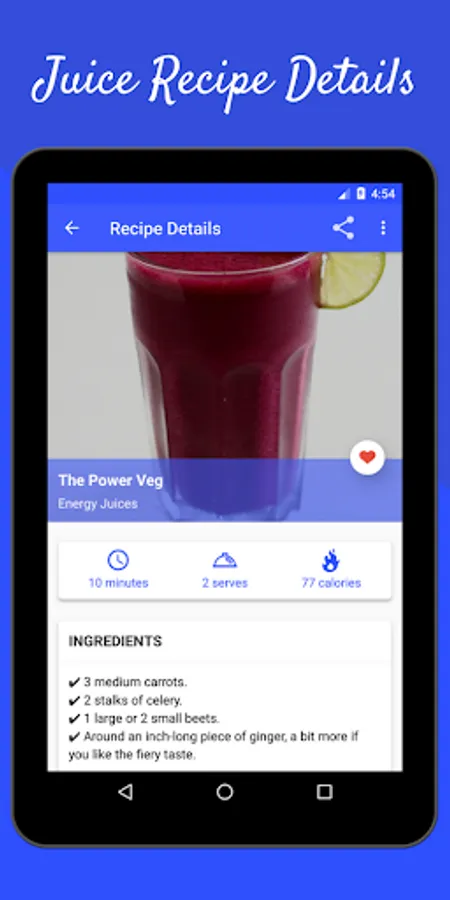 If you need Energy juice and vitamin juice recipes then this app is for you. Best homemade Energy juice collection is in this app. Get this app now for free. You will also find raw veg juice recipes in this apps recipes collection. Best veggie juice recipes for everyone.