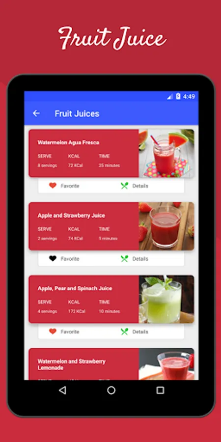 You will get all fruit juice recipes with step by step recipe making instructions. You can choose your favorite one from those lots of best fruit juice recipes. Fruit juice diet recipes are also in this juices app. Most healthy fruit juice for free.