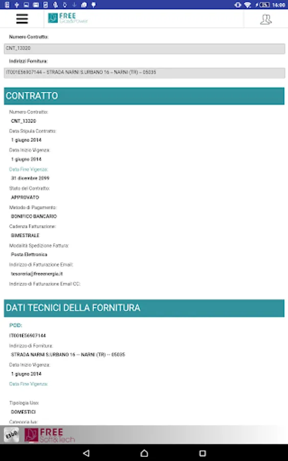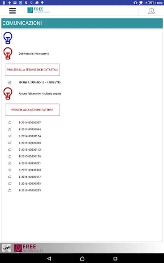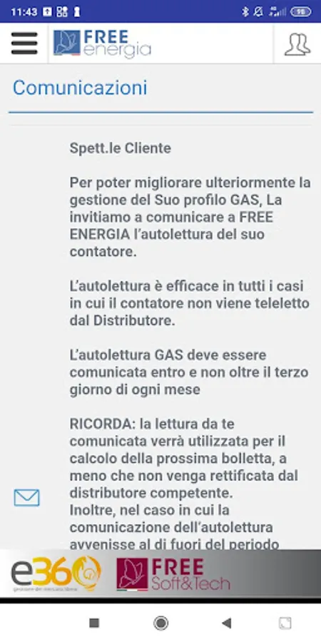 The app provides a direct link with the company through the Communications section in which there are specific information and service messages for each customer.