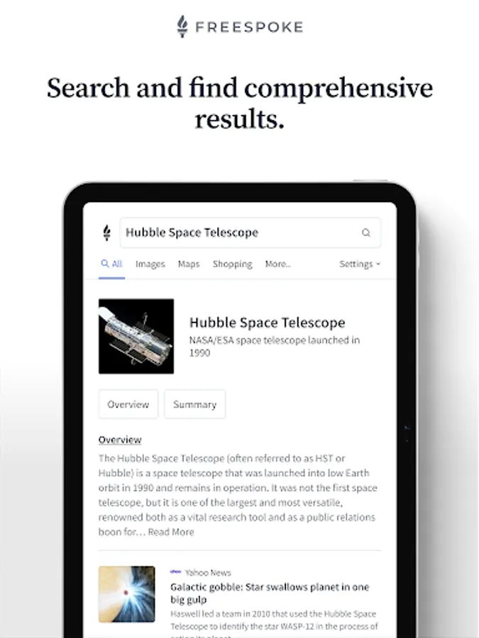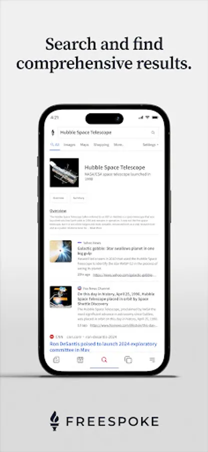 The Freespoke App gives you a fuller set of results when you search for information, news, and do your shopping. We deliver comprehensive results to help you draw your own conclusions and have the all the knowledge you need to make your decisions.